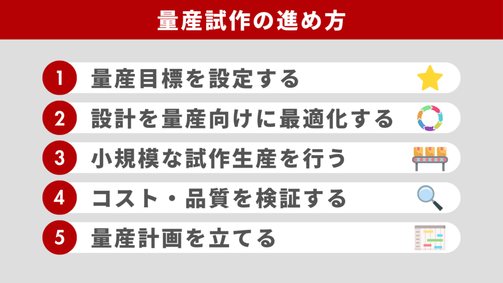 量産試作を進める際は、次の手順を押さえることが大切です。