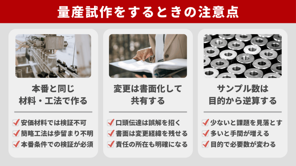 以下のポイントを押さえることで、量産試作をスムーズに進められます。