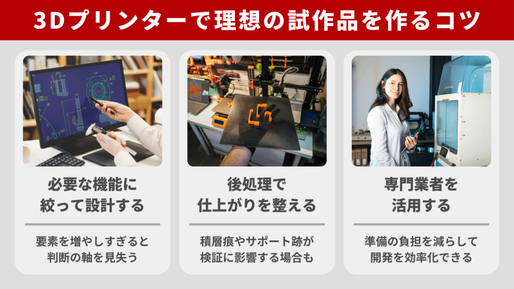 理想に近い試作品を作るためには、以下のポイントを意識しておく必要があります。